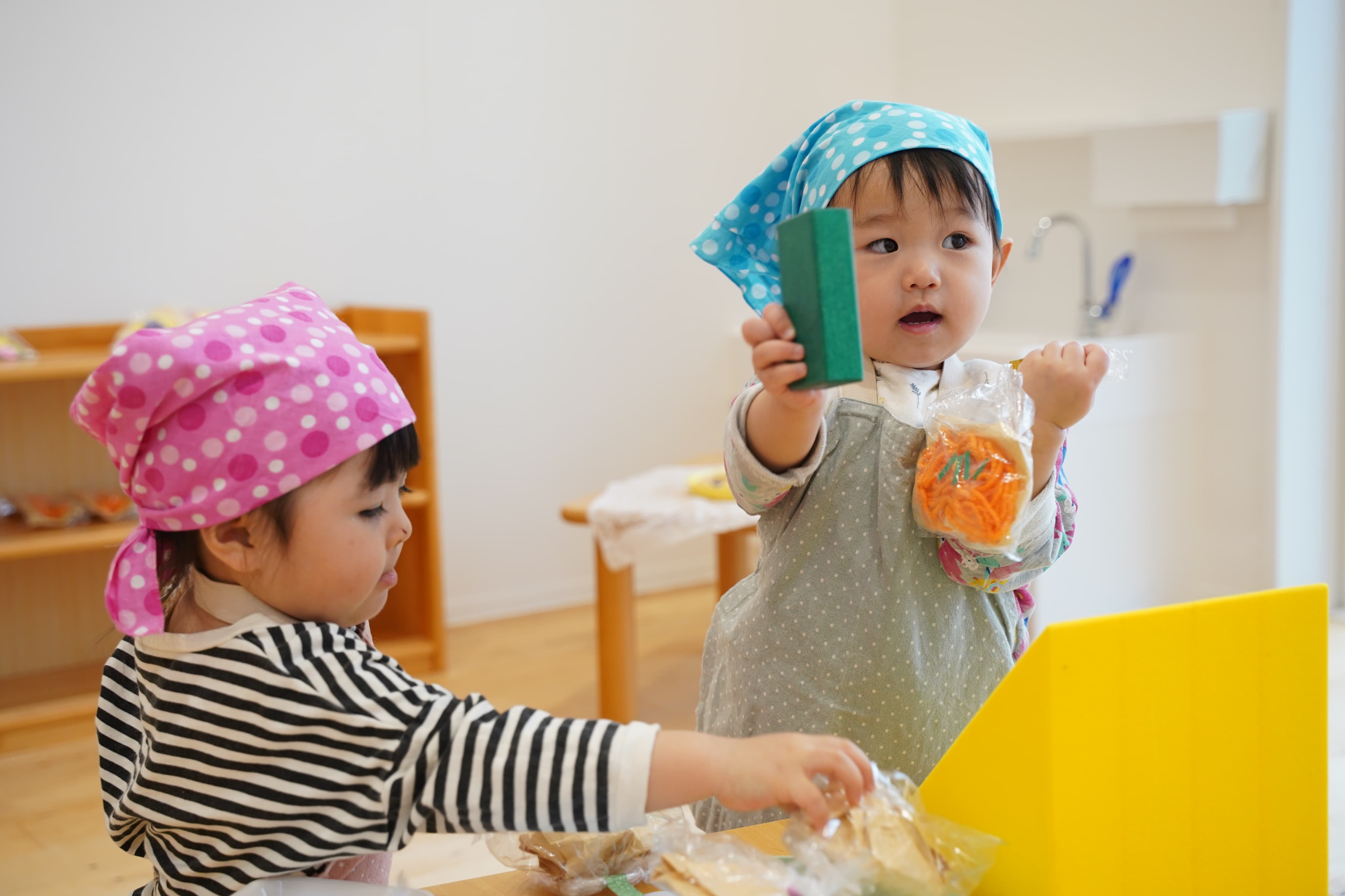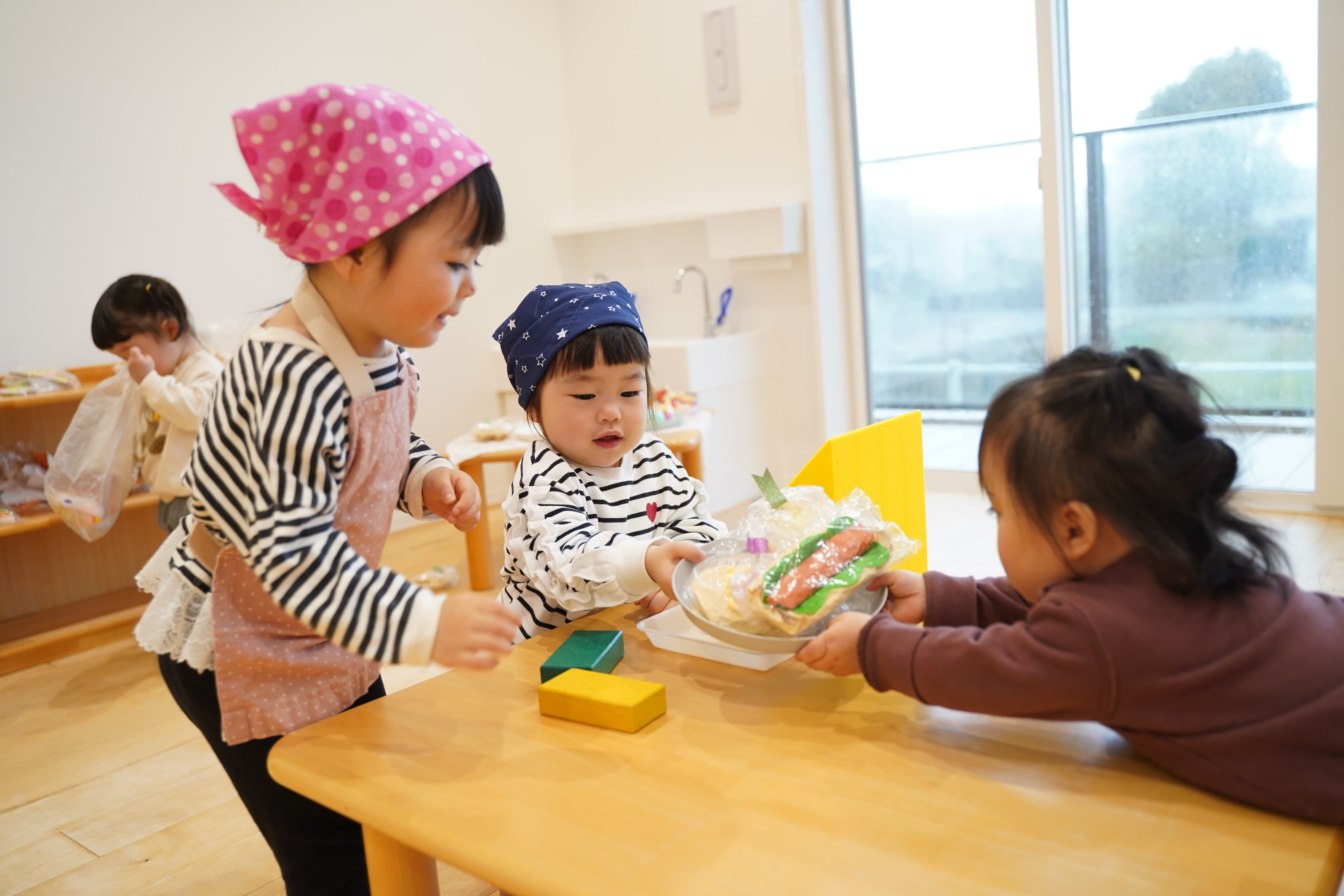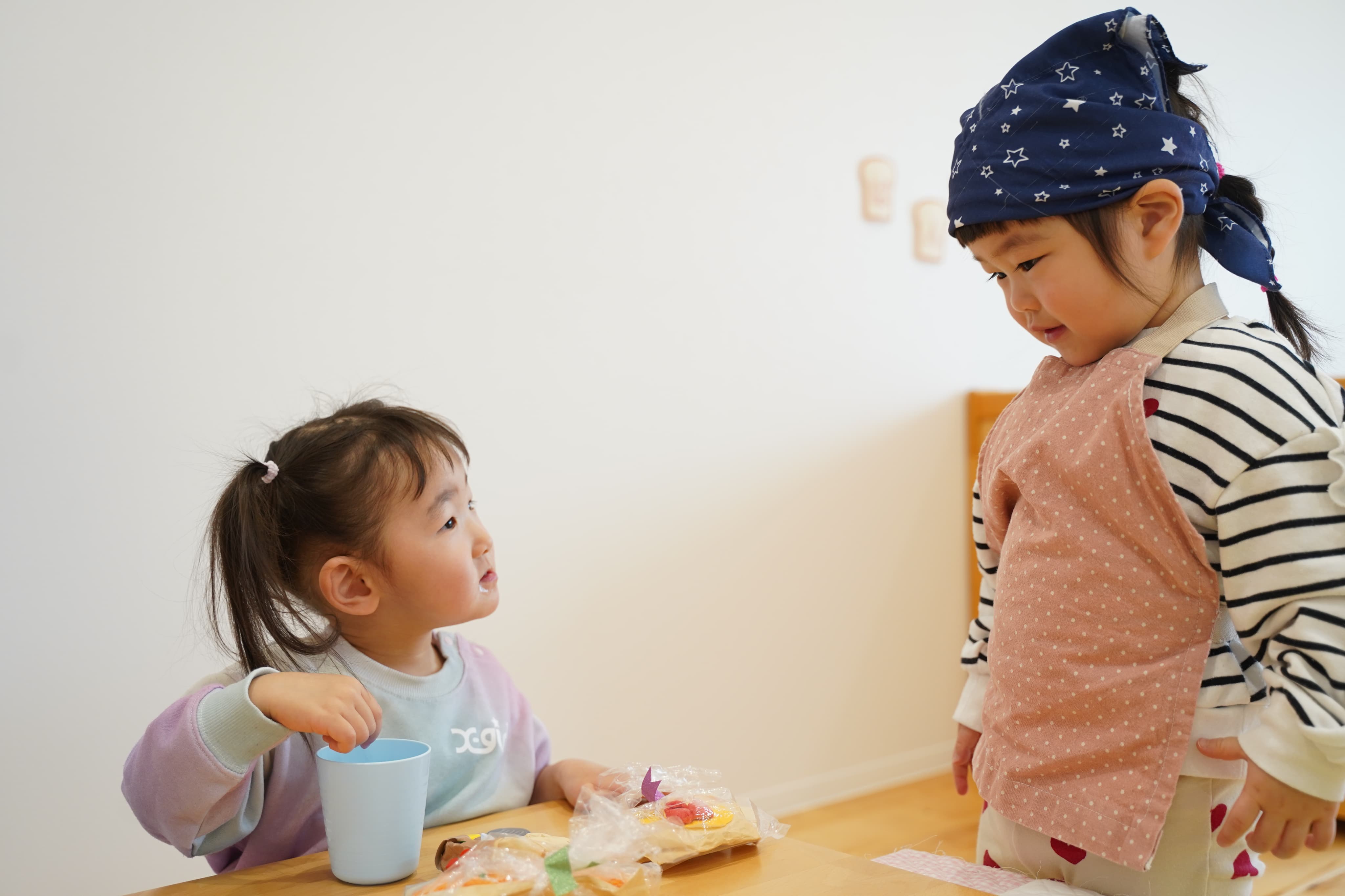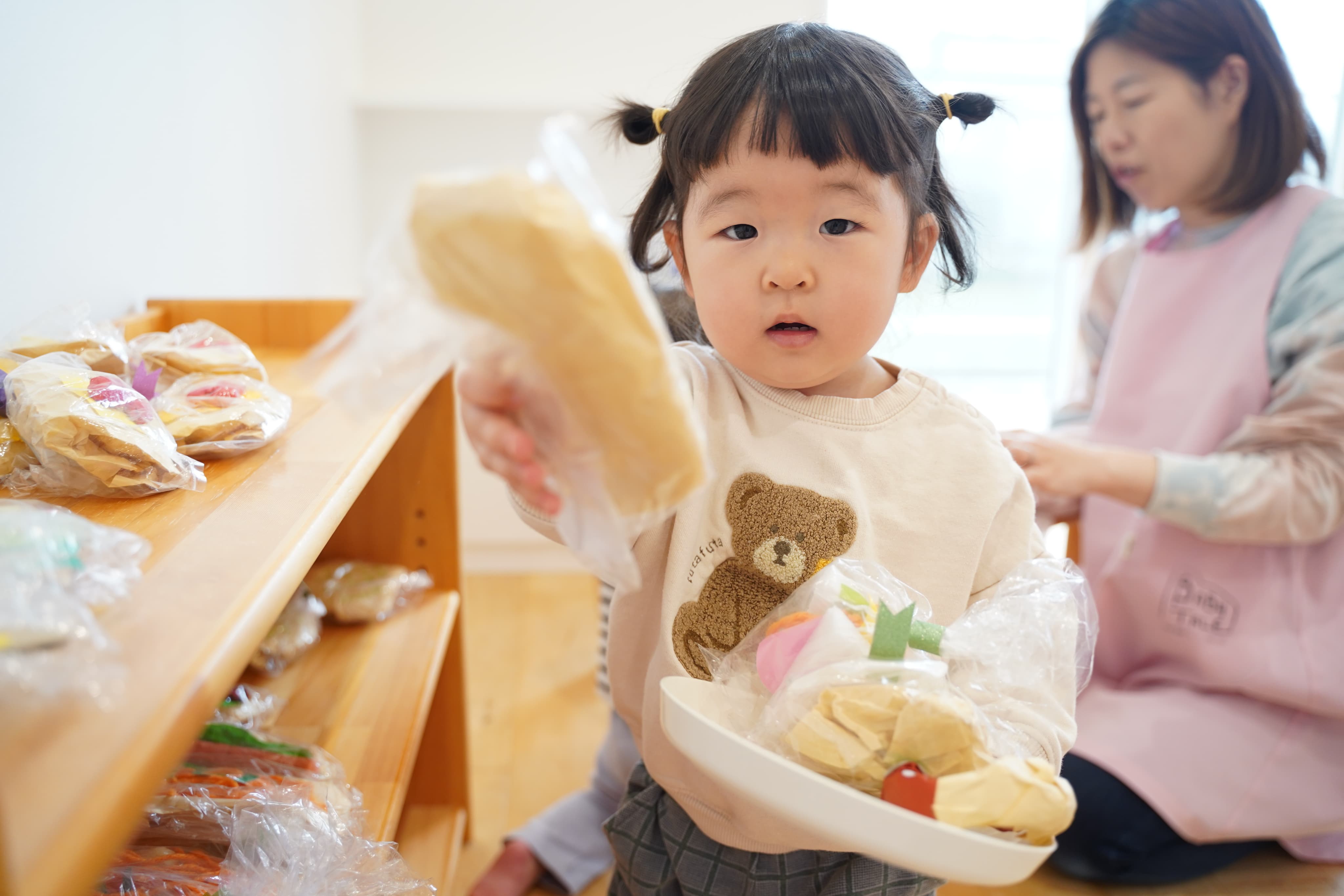 「いらっしゃいませ〜!」「はい、どうぞ〜!」など言葉でのやりとりも上手になったね♩🤲