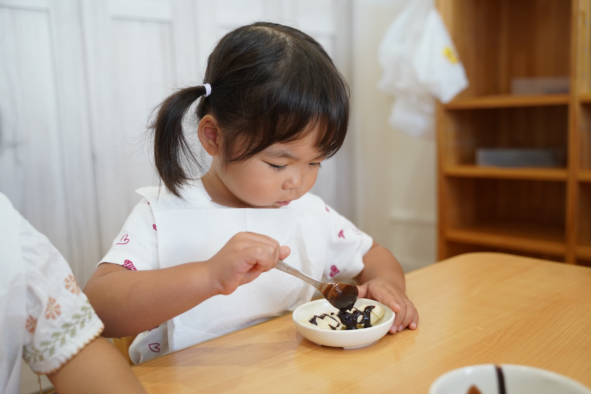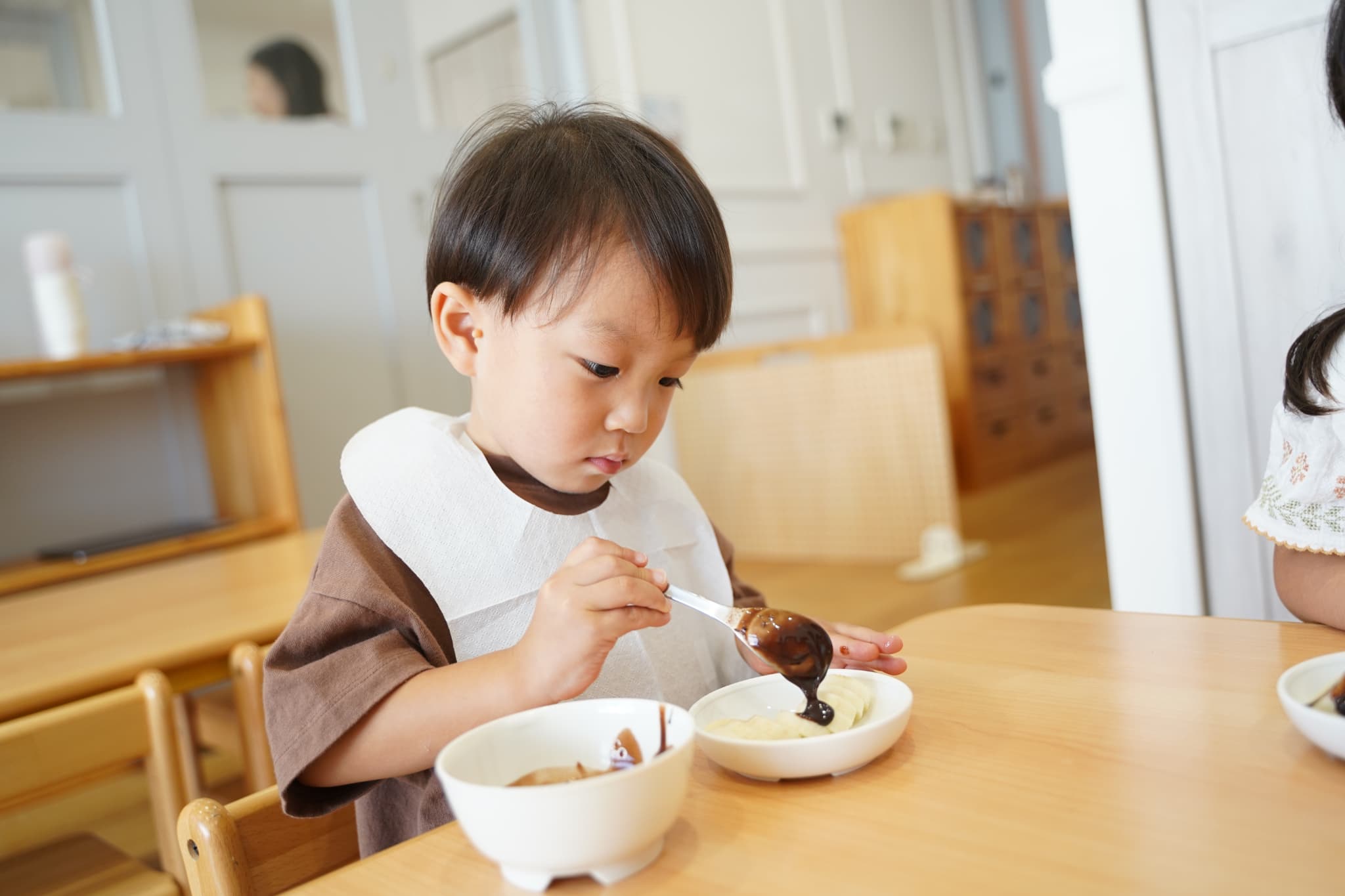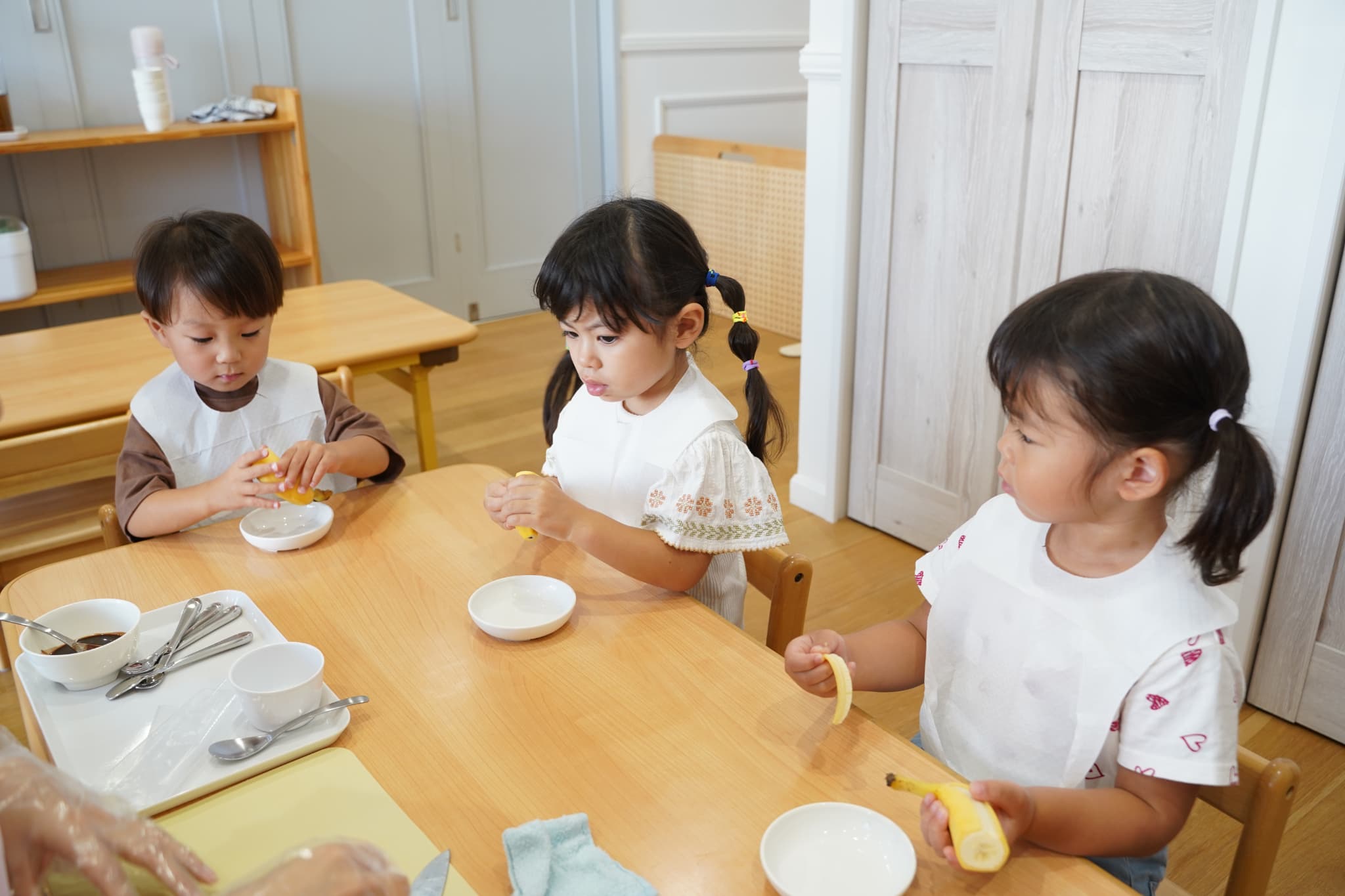 チョコ風バナナを作ることをとっても楽しみにしていたもも組さんたち😆