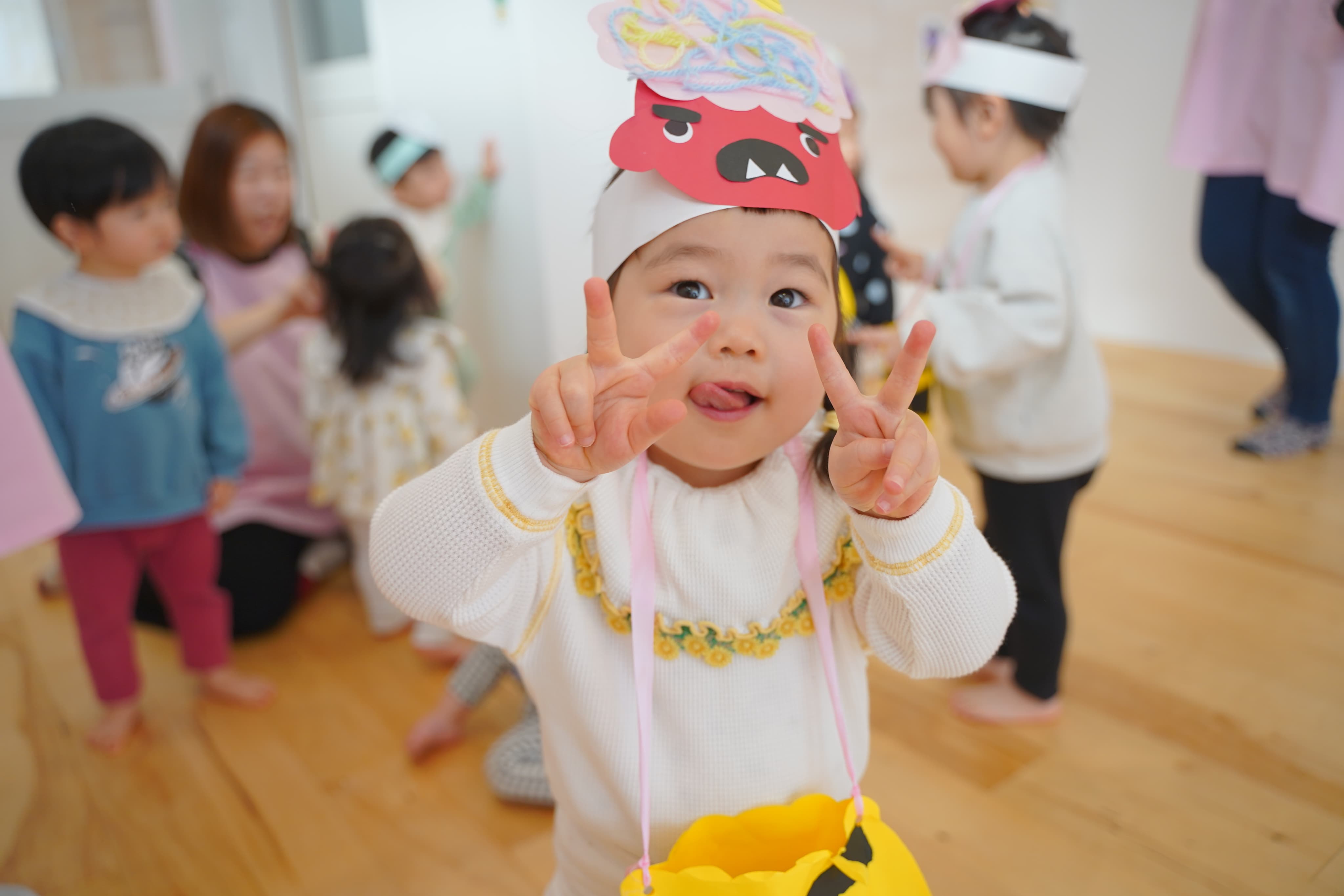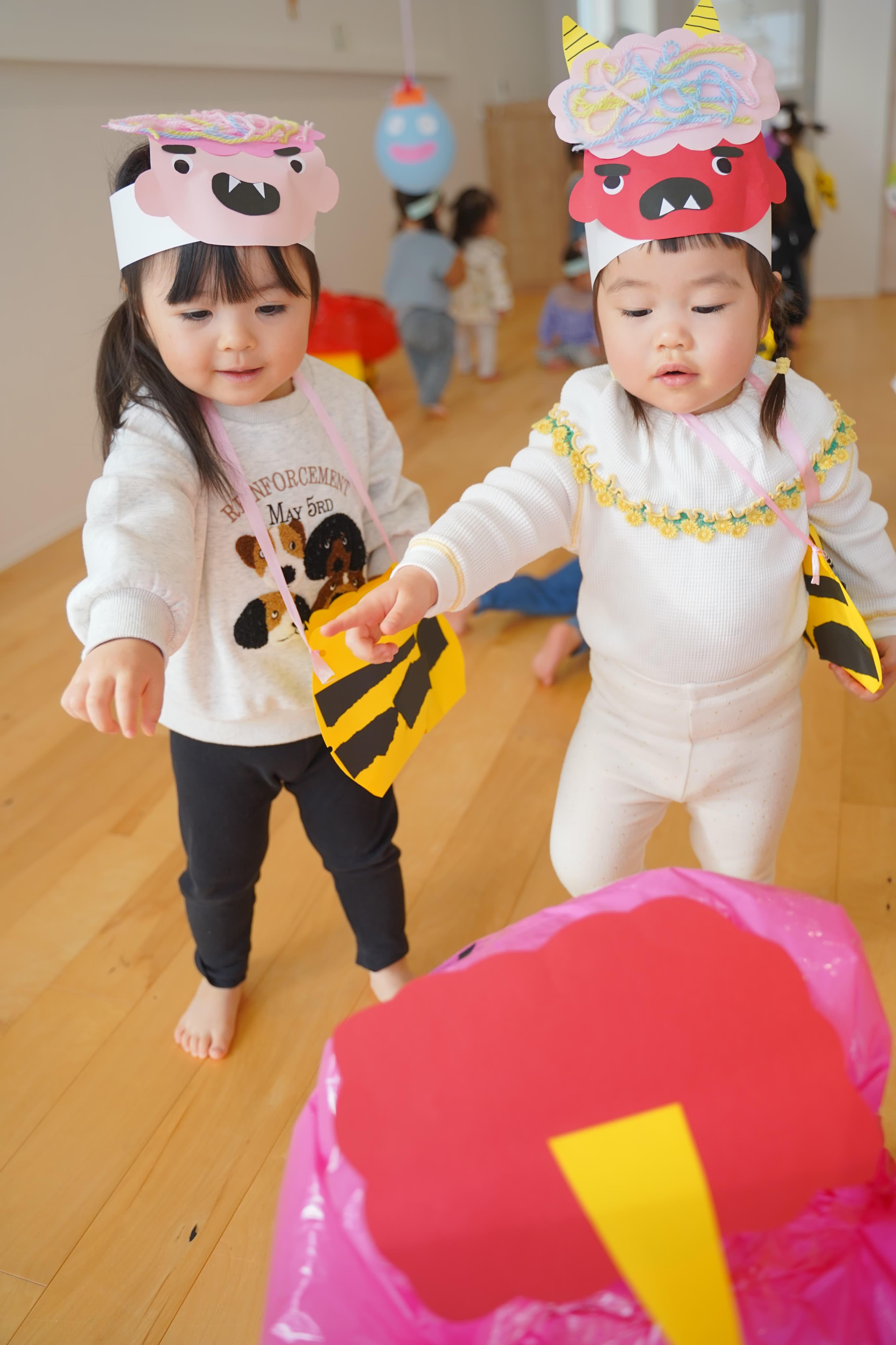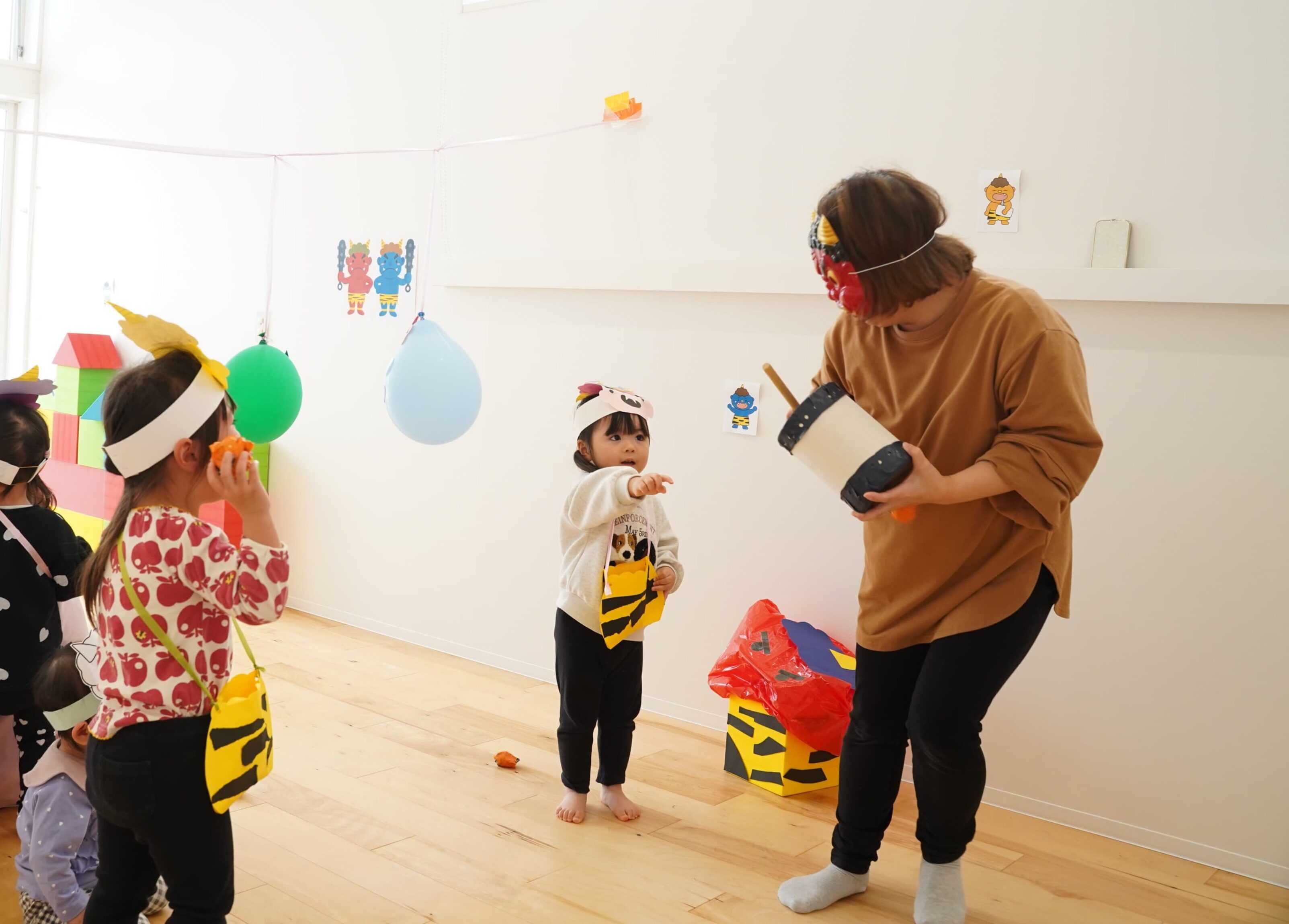 みんなで楽しく鬼のパンツを踊ったり、豆まきをしたりしました🎵