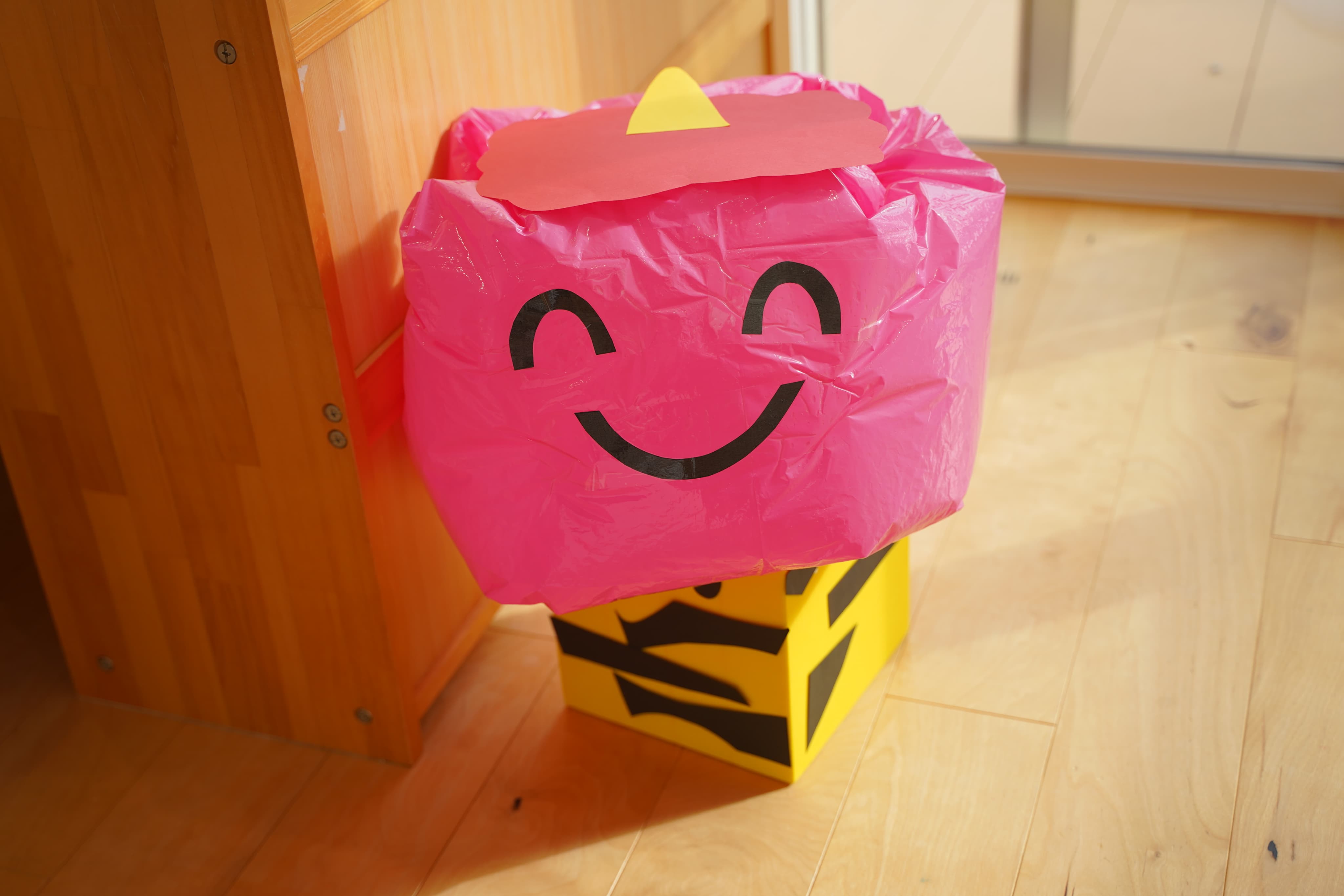みんなで作った新聞ボールの豆を「えいっ」と投げましたよ🫘