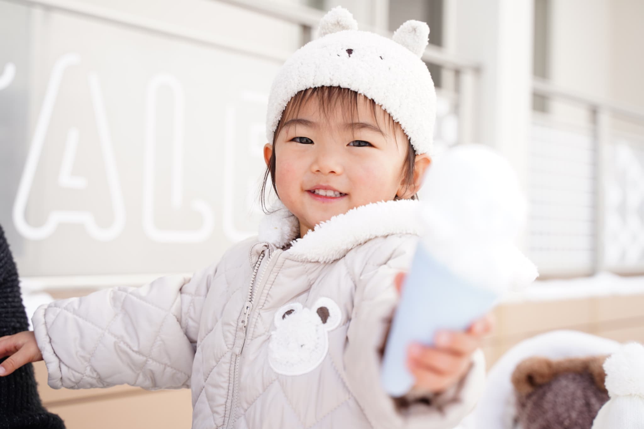 「冷たいね〜!」「気持ちいいね〜❤️」と手に取ったり、ほっぺにあててみたりして